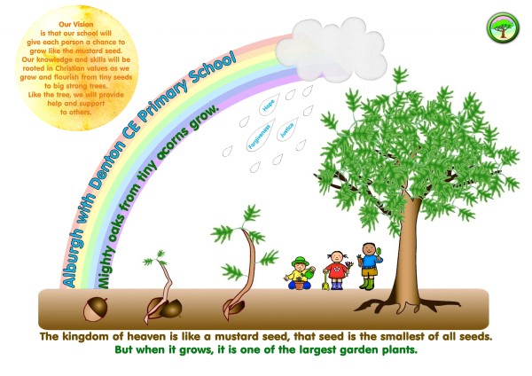 Our Vision is that our school will give everyone who enters a chance to grow like the mustard seed. That their knowledge, skills and Christian values will grow and flourish from tiny seeds to big strong trees.